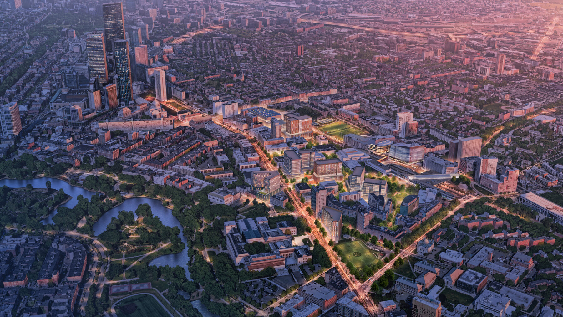 Aerial view of Northeastern University illustrating the campus vision outlined in the university’s Institutional Master Plan.