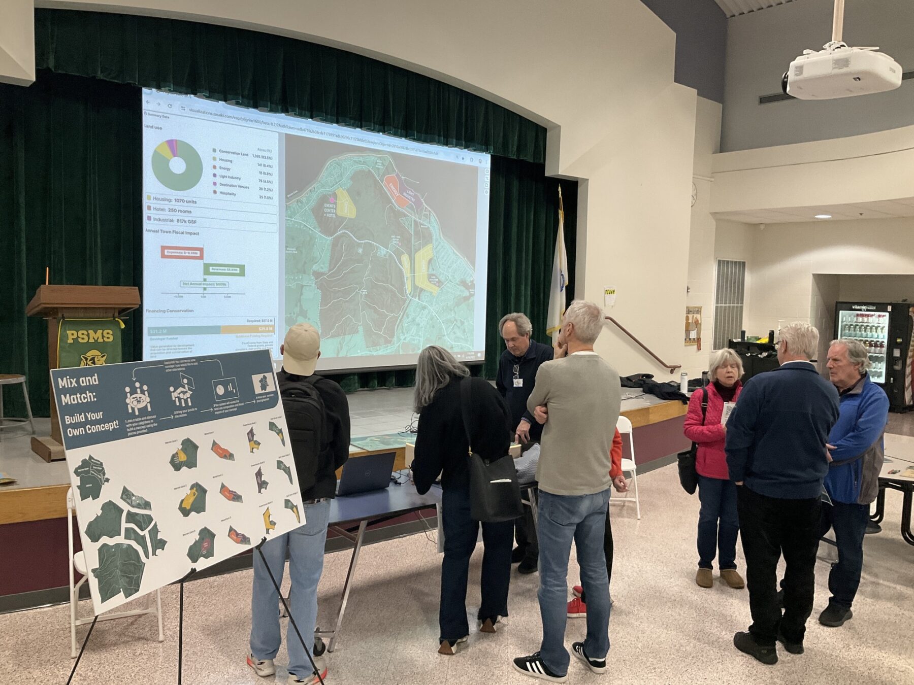 The live dashboard visualizes different land use concepts and potential town fiscal impacts.Â