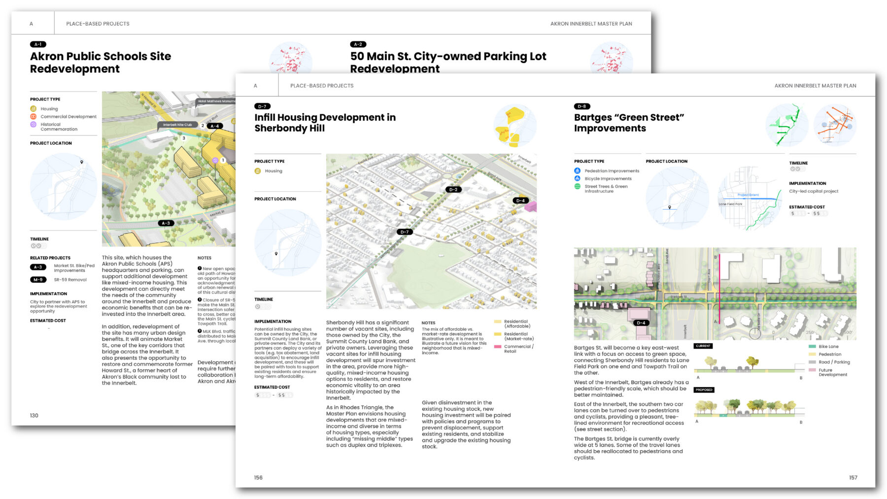 The ambition of the Innerbelt Master Plan is to address not only the physical impact of the Innerbelt, but also its economic, social, and psychological harms, particularly to Akron’s Black community. To do so, the Master Plan outlines a comprehensive reparative program that encompasses the economy, housing, mobility, environment, history & culture, community wellbeing, and community power. The plan proposes a series of spatial projects, social impact tools, and implementation frameworks that work together to address the concerns of Akron residents