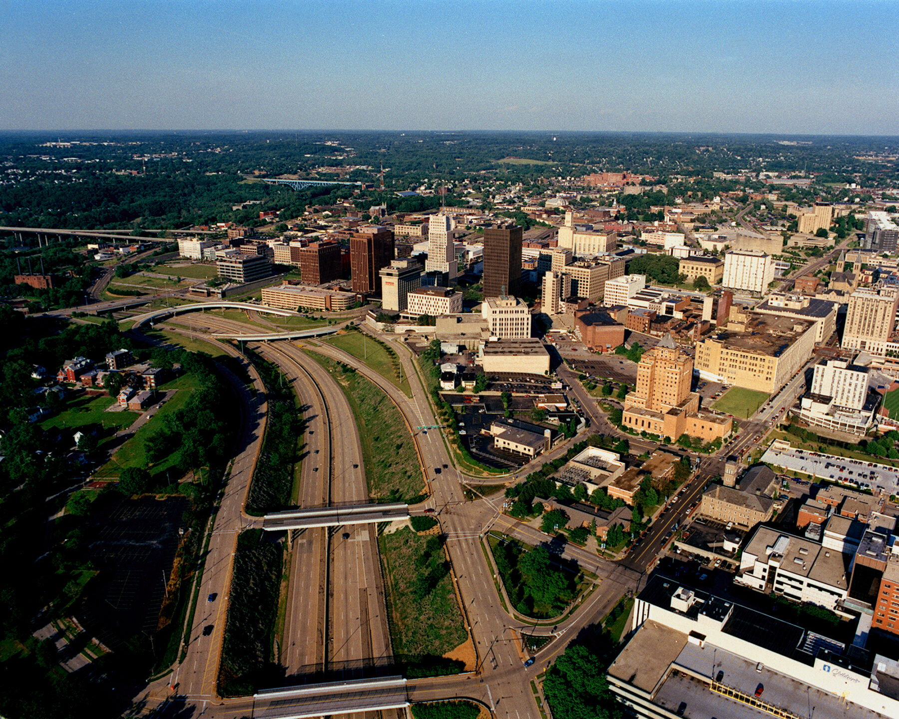The Innerbelt is a 4-mile, partially decommissioned highway that cuts through the center of Akron, Ohio. Its construction, which lasted from 1970 to 1985, displaced over 700 homes and 100 businesses, erased the city’s former Black main street along Wooster Avenue, severed community ties, and inflicted lasting harm particularly to the city’s Black community. The highway, along with Urban Renewal and “redlining,” is a legacy of discriminatory 20th-century urban development practices – a legacy that the Innerbelt Master Plan aims to address.